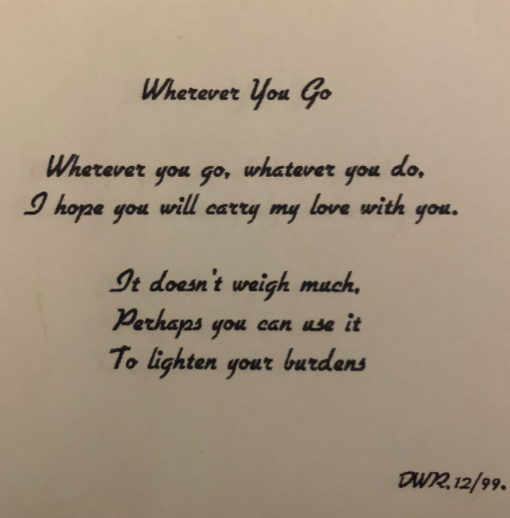 Just a few days before he died, I was helping to organize his desk. He had written this back in 1999, when he thought he was going to die. He made several copies which he kept in his desk drawer, presumably so they would be ready to give to us when this day came.