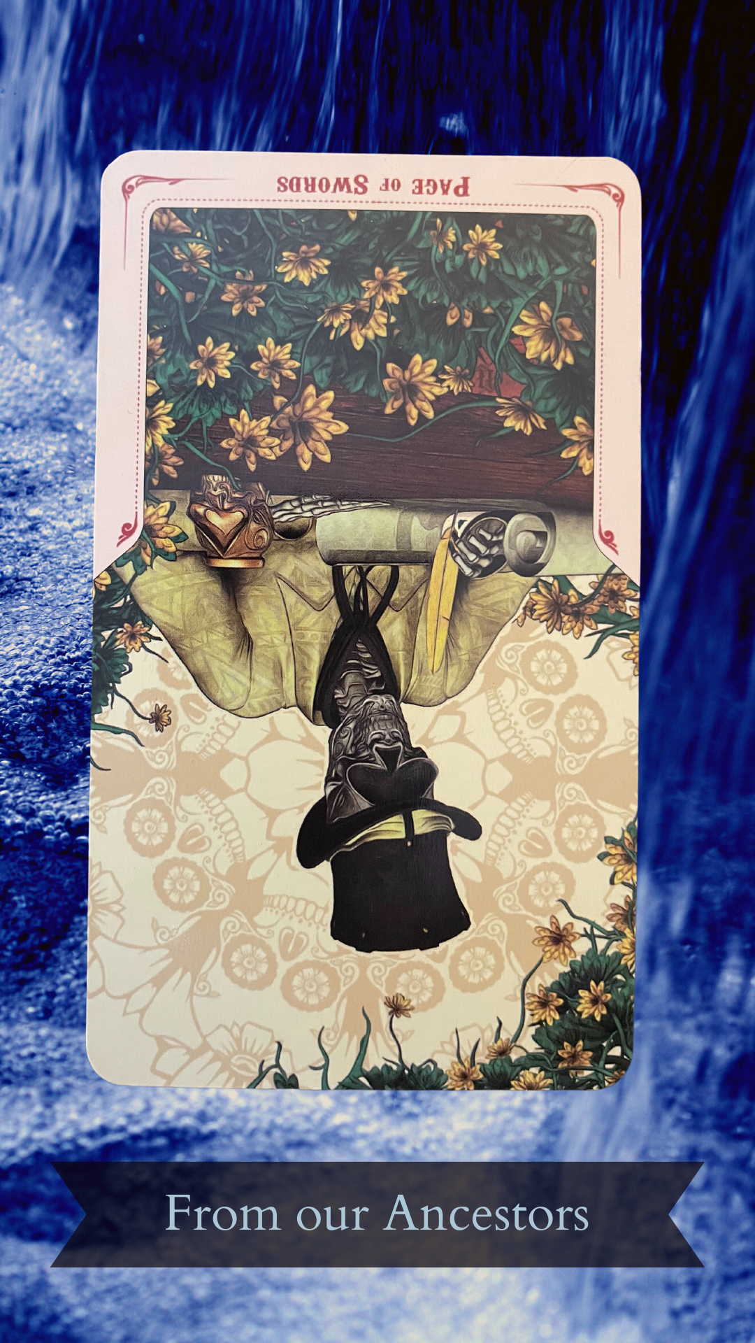 As I sit with this one more, I really feel like our ancestors are mocking us just a little. They’re showing me how we’ve been buried by good intentions with regard to science and reason. And for all the wonderful awakening energy I’ve seen out in the world, it needs to be tempered with good information. We have been excitedly sharing a lot of half-truths, some are well-intentioned but much of it isn’t. If we aren’t tempering our research with a solid grounding in ethics and equality, we run the risk of excitedly evangelizing misinformation and misdirection, diluting the impactful messaging embedded within. Worse, if we aren’t vigiliant about the information we consume and share, we run the risk of allowing our excitement and new awakening to be manipulated, keeping humanity stuck in its wrongness. The Page of Swords is here to help temper our reason, hone our enthusiasm and take more responsibility for our communication & conclusions.