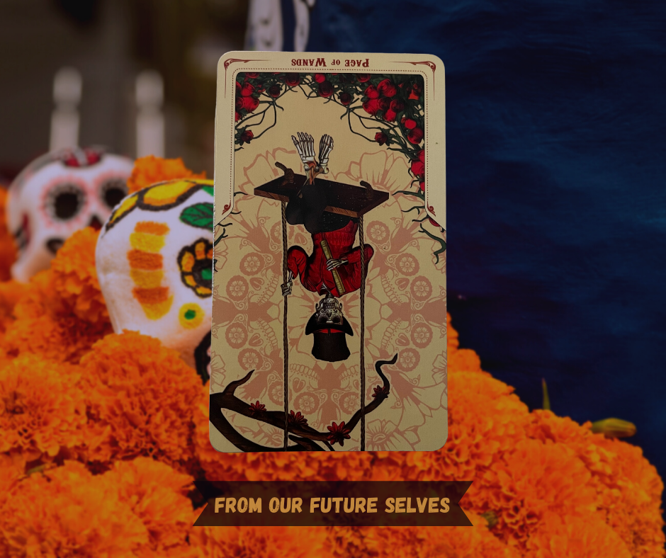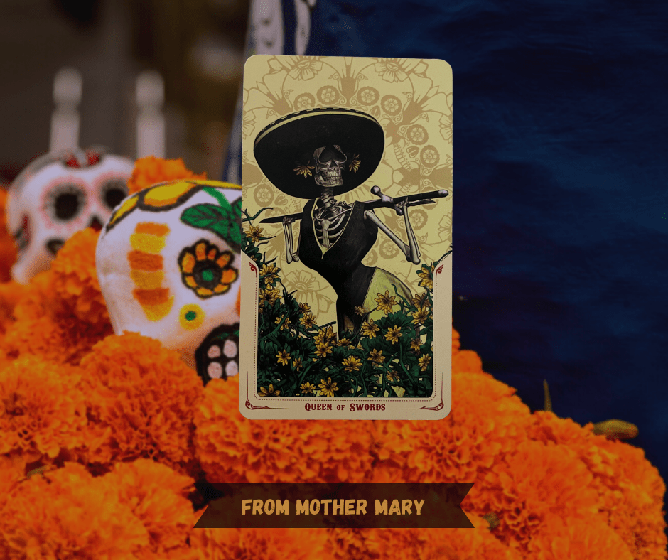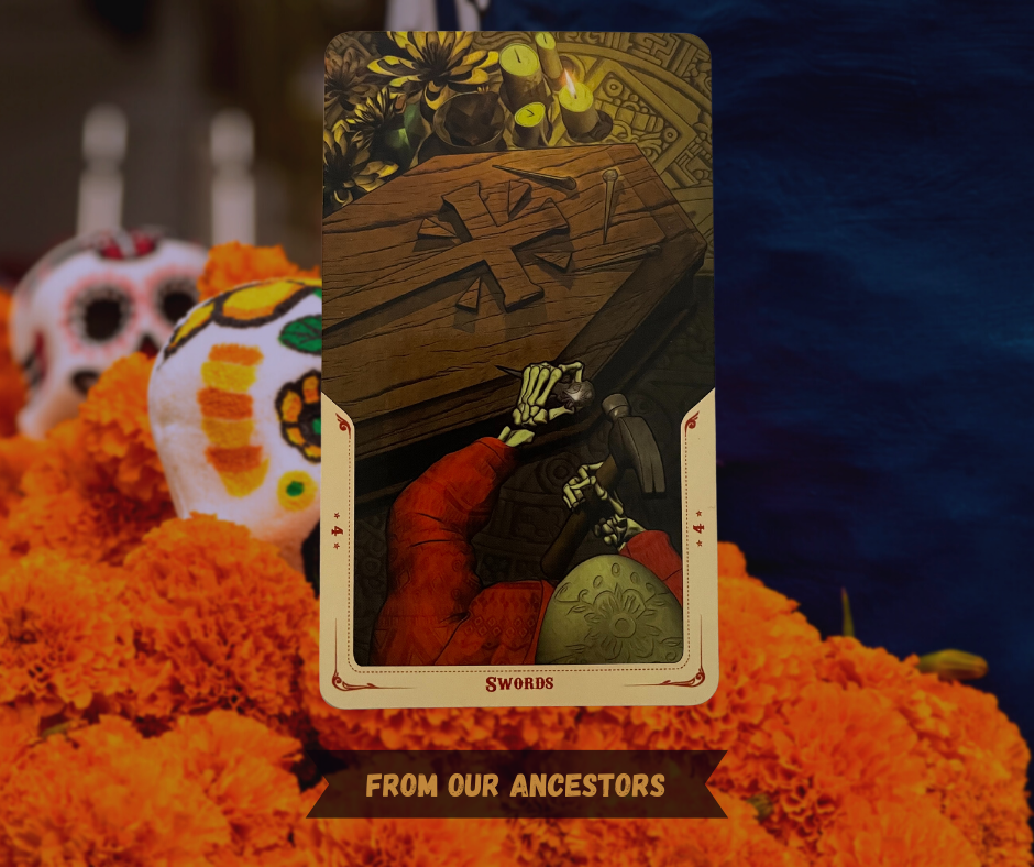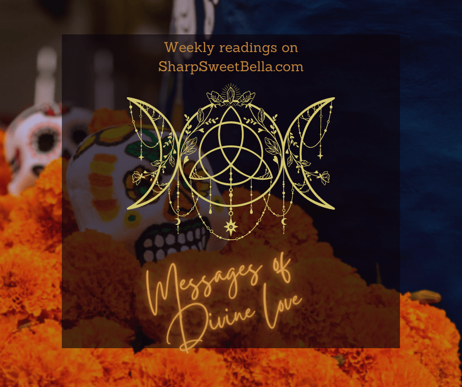 This is the last week I’ll be using the Santa Muerte tarot deck. A beautiful deck for this time of year, but it’s also been carrying a disproportionate weight for these messages of love. It needs a break – and it’s asking us specifically to give our own ancestors a bit of a break this week as well. Once we wind up our Samhain, All Hallows, All Saints, All Soul’s and Dia de Los Muertos celebrations, need to let our ancestors rest for a bit. We have gotten as much out of this form of inquiry as we needed this year. It is okay to let us & them have a bit of a restorative nap.