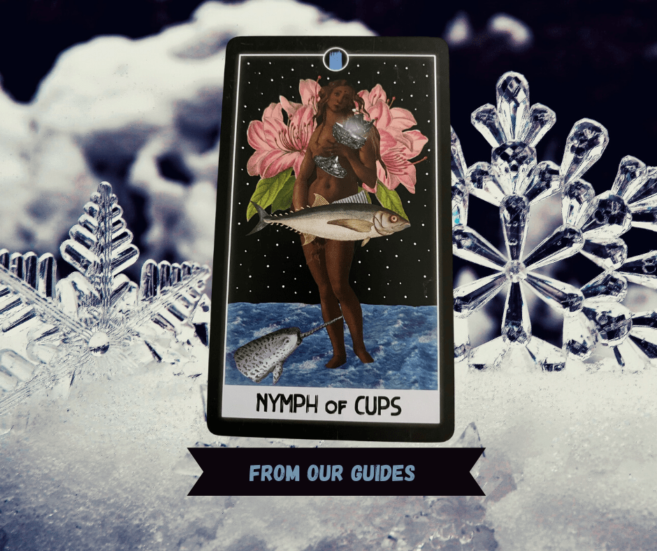 This is the social butterfly card, the energetic, idealistic spirit that flits about sharing love with a number of different kinds of people, bringing them all together with enthusiastic, earnest hope. Much like New Relationship Energy, this is the beginning of an adventure. Falling in love with our surroundings and our deeper emotional inquiries. While we are still somewhat skimming the surface, we are beginning to blossom with new life and new hope. We are emerging from our cocoon and are encouraged to make a splash with our lives, to try out these new emotional strategies and surroundings. It is okay to just enjoy the newness of our transformed perspective – honing that intuition will come later.