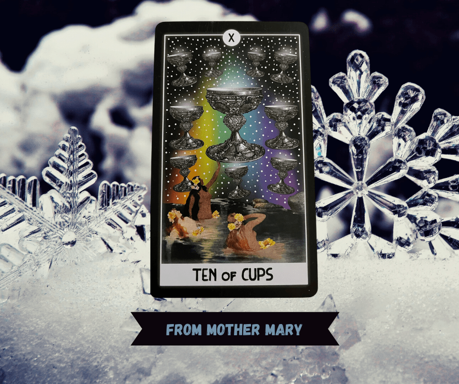 Most of us already know what we need to let go of. Here, Mary is affirming for us that we truly can have all that we want, so long as it aligns with the responsibility implied by the Queen of Pentacles and the elevated consciousness of the Awakening card. This is the path to our true destiny, to our promised land of abundance, glory, building a legacy that shares an abundance of love, blessings of joy, and magical manifestation. Here, we need to align ourselves with our true goals. To see the potential of our future selves and act with nurturing integrity and compassionate pragmatism in the present. And trust me, when we’re in alignment, the universe opens up and gives its blessing with such radiant magnificence, it becomes hard to ever stray from the path again. Mary tells us that this can be ours, that we can seek her blessing and guidance to experience this purity of love in our everyday.