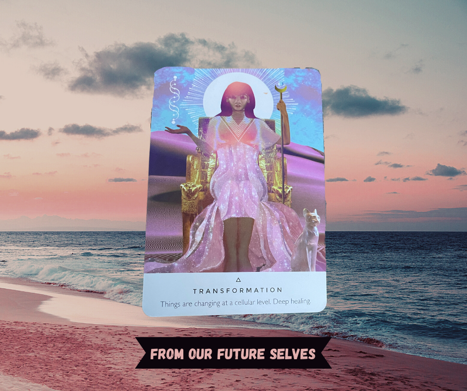 Our future selves have been very optimistic with us lately. Transformation is already happening. We have already begun the process of unraveling old structures holding up once sacred towers. Yes, they’ll fall and yes, it will be disruptive, but that is the only way to truly uncover the treasure of our authentic selves, of creating a place where we can all flourish, where we can find support for the unwinding of toxic habits and limiting beliefs that hold all of us back. TRansformation is coming.