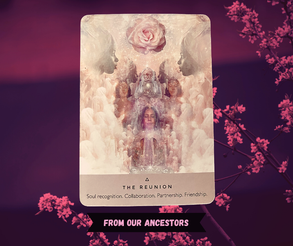 We are in a state of happy reunion, both with our ancestors, but also with our soul families. They are slowly starting to reveal themselves, like layers of veils slowly pulling away to reveal the ancient beloveds we’ve known all along. And just like any family reunion, it may be tense at first, it might reveal uncomfortable truths about us. Love expressed on a cosmic level can look like anything from a mother’s sacrifice to a lover’s tender words, it might be in the curt nod of a comrade or the lingering touch of a spouse. No matter what form our love takes when it arrives, cosmic love is about recognizing and healing the deepest truths about ourselves in order to become who we truly are. Embrace the coming waves of soulful recognition from both our bloodlines and our past lives.