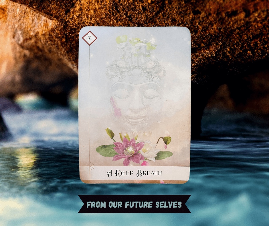 One of the beautiful advantages I find with this deck is the simplicity of the messages. Where are we this week? we ask. “Quieting the mind” is the humble reply. How many of us got caught up in overthinking things last week? Especially given the emergency state of affairs that the Supreme Court put people through last week (was that only a week ago??), we collectively are in a place where we need to slow down, check back in, and give ourselves permission for a little bit of peace. While the fights around us are important, we need to allow ourselves breaks from the constant outrage. We cannot carry it all on our own and often once we settle back into ourselves through mindfulness, we often find new answers to the questions we seek. And this position’s message will always start with “turn inward and make room to listen to yourself”.