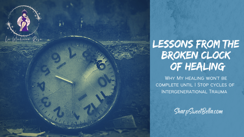 Trauma transforms us into broken clocks, frozen in time, arrested in our development. Generation after generation, we experience new but familiar scenarios of the same wounds. We are offered a choice – we can continue like we were, struggling in patterns we don’t want to understand, living the consequences of the sins that came before us. Or we can dig in, listen to our elders, and learn more about the people who came before us to better understand the wounds that lay under the surface of the baggage we earned fair and square. Because we can’t rewind time the only way to deal with the wounds that are surfacing is to find the compassionate witness within to heal these wounds for ourselves and others.