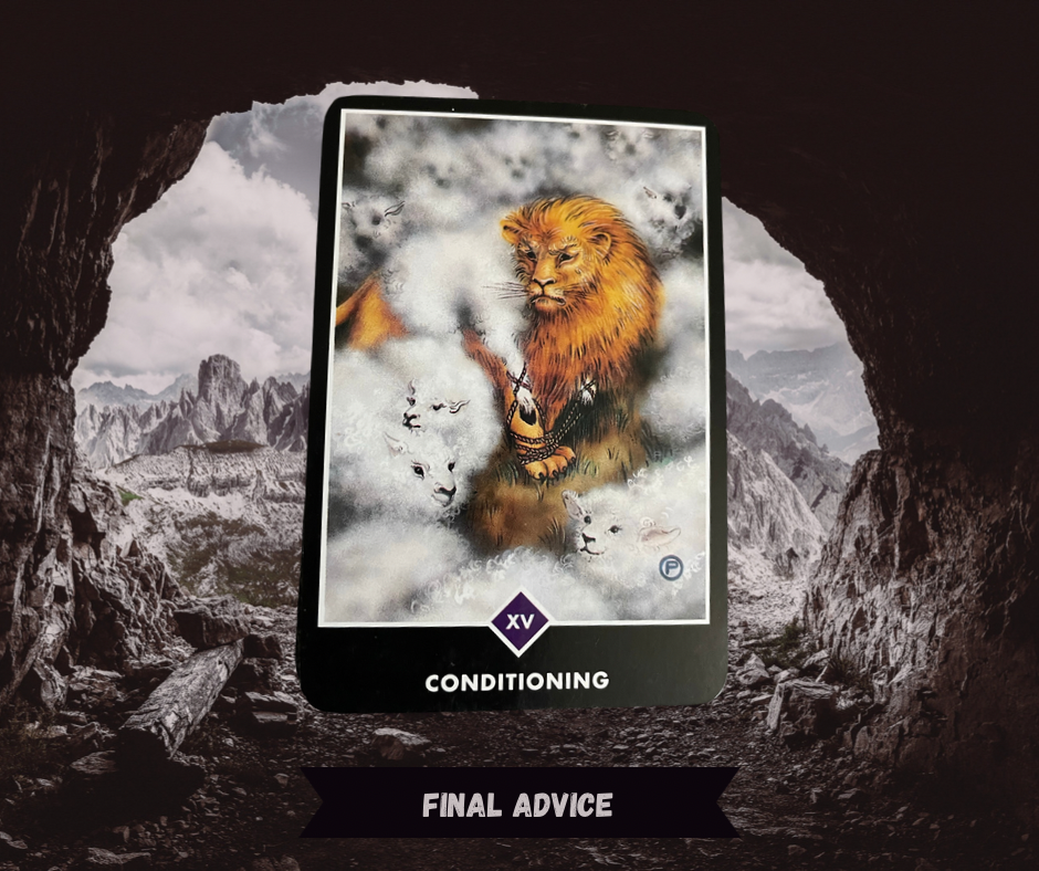 And yet here, I also see the smug faces of patriarchy’s puppets who love to think of themselves as “alphas” (lions) and “radical feminists” – above all the “woke brainwashing”. They claim to be independent and strong, yet all of them seem heavily influenced by the same kind of disguised group think as what we see in the card – like sleeper agents of patriarchy. They all seem to take their orders from someone else – a centralized message of rejection, not release, of control, not freedom. They all seem to parrot the same concern trolling talking points without ever recognizing the ragey echo in their voice. They aren’t nearly as superior as they want to believe as they fingerprint layers and layers of self-doubting deception. They’re about stable as a tacky dollar store gringa-appropriated pinata under the full force of collective and intergenerational healing.
