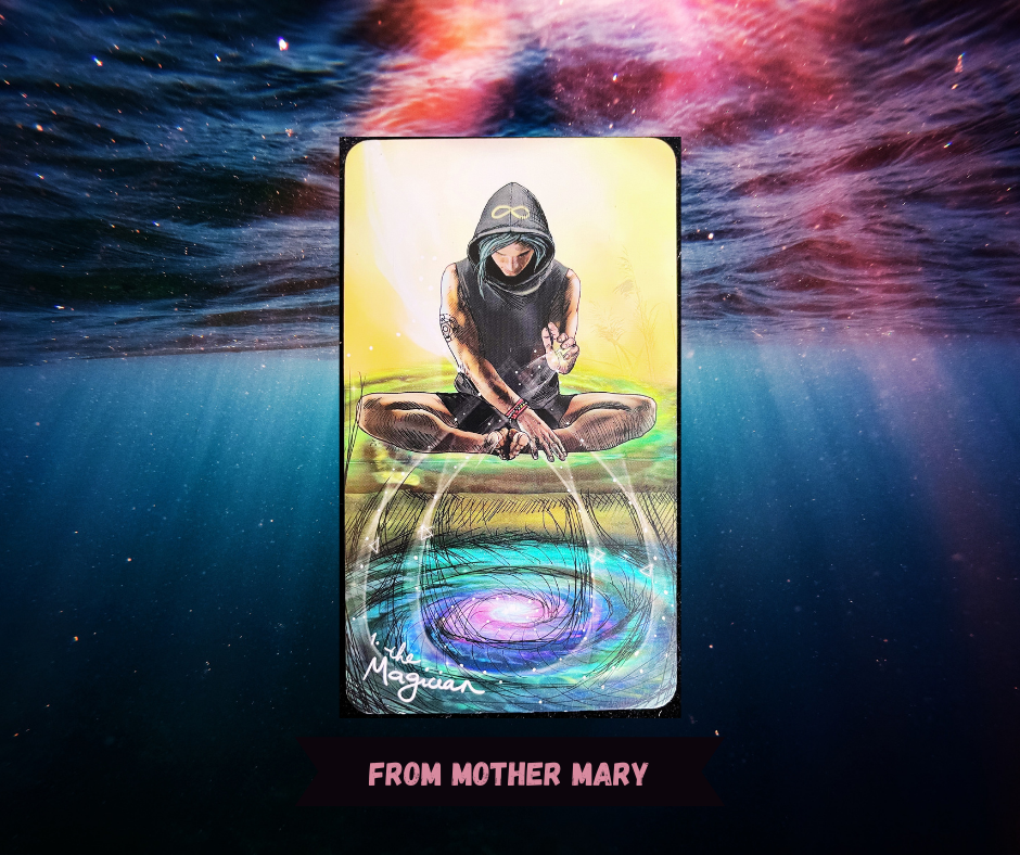 The Magician is a powerful signal that we have the energy, skill, and wisdom within us to master our lives and hone the gifts of our lineage. Tapping into our creative, manifesting energies is essential right now and will help us bridge the gap between illusions of the past and promised fulfillment of the future. The magic has been unlocked and is available to us right now – it just needs the practice to be used in a way that supports both our desires and the bigger picture. Mary reminds us that we are powerful but still have a responsibility to use our magic with only the best motivations and the clearest of intentions.