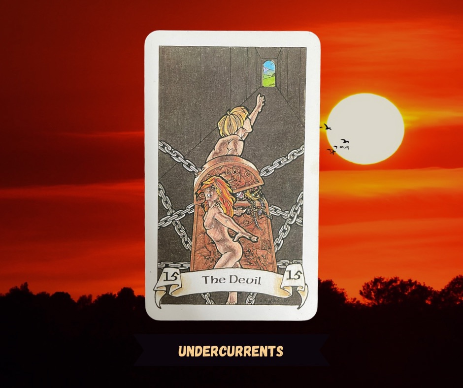 The Devil card shows up to remind us that temptation arrives in many forms. Illusions of safety ride in on the shattered promises of old paradigms. And when we are flush with success, we are even more likely to fall for empty promises, too distracted by our pride that we fail to align with our highest selves. Here we are warned to avoid taking the easy road, getting wrapped back into our addictions and superficial nonsense. And addictions don’t have to be chemicals like alcohol or opiates. They can come in the form of mindless spending (“retail therapy”), harmful gossip, consuming empty sugary drinks, and internet trolling. We are all subject to these weaknesses – the question is will we remember that we are also in control of them too?