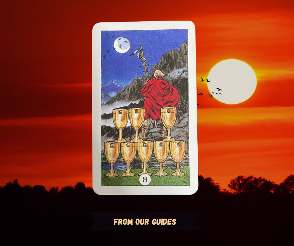 After our guides used the Four of Cups reversed to tell us that we know what need to do, I think this week we are finally doing it. We’re finally making the choice to leave a difficult situation, knowing that it drains our cup more than it replenishes it. So now we move forward into the world, perhaps a little bruised and melancholy, but lighter than we might have expected to feel. Whatever it is, it’s done. Like done…done. We are encouraged to move forward with new faith in ourselves. Releasing this situation will allow everyone involved to pursue their highest truth.