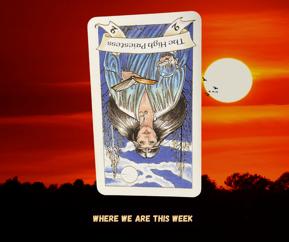 On the heels of the Justice card last week we have the High Priestess reversed. To me, this is about a clouded, panic-stricken use of our intuition. We might be operating from a skewed point of view or blindfolded to the truths right in front of us. This causes us to see through the lens of our fear or our pride than the lens of true clarity and knowing from the 3rd eye. We need to recognize when we’re trying to make facts conform to our viewpoint stead of adjusting our viewpoint to accept new facts and theories as they present themselves. Intuition requires us to extricate what is our own ego from the elements of our vision and inner truth.