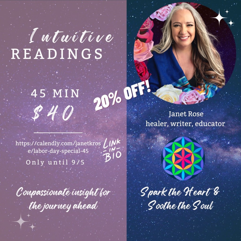 Extended for one more day! Book this reading before Tues 9/6 here: https://calendly.com/janetkrose/labor-day-special-45