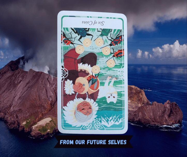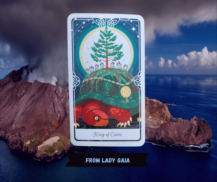 This is such a beautiful card – and there is no way I can do justice to the indigenous stories of the World Turtle or Turtle Island. This is a symbol of the intertwined relationship between life and Mother Earth. There is a sacred interdependence between all things. The King of Coins is such a natural way of demonstrating this because the safety and stability of such a demonstrably close symbiosis nature is exactly in this ruler’s wheelhouse. Just like the turtle in legend, the king of coins within us recognizes that our actions have consequences for other living beings dependent on our choices. So, this week, let us notice the ways our actions are intertwined with each other. See through the eyes of a leader who truly recognizes that we are one.