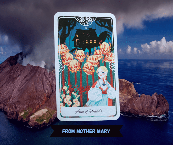 “The night is dark and full of terrors” is what came to mind when I saw this. The nine wands card brings to mind the image of a boss battle. We have faced the dark side of our ambition, the weakness of our passion, the vulnerability of our wounds and we are facing our final test – to prove we are the leaders we have been called to be. If it sounds scary, it should be. But that’s why Mother Mary brings the message – because she reminds us that throughout any ordeal, any trial in our lives, we are never truly alone. We might have to walk through fire by ourselves, but that doesn’t mean we don’t carry the strength of the saints, angels, and ascended masters with it. It doesn’t stop us from wearing the blessings of deities and ancestors on our shoulders. We carry threads of every person who ever mattered to us, every loving kiss from a beloved, every embrace by a caregiver in the cherished chambers of our hearts. We are never alone. And in the journey that we face, this last test, carry the soul of all these supportive beings with us.