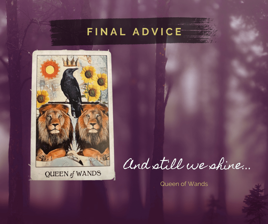 The position of this card doesn’t just refer to Mother Earth in terms of environmentalism, but also in terms of our physical existence here on earth. We don’t have time to muck about in the drama, we have to cut through it all with a winning strategy. We need to keep a logical, level head and make measured choices about the future. Now isn’t the time for passionate clap backs, but a strong strategy for our future, collective success. If it doesn’t serve our vision, it doesn’t need to come along for the ride.