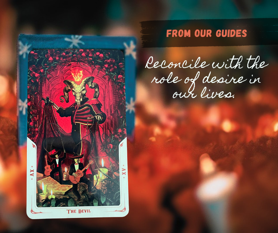 Our guides are reminding us to recognize our true desires and calling from our addictions and temptations. Much is blamed on the concept of the Devil, but as I wrote shortly after the Insurrection, often the devil is our own willingness to scapegoat others for our lack of impulse control or why we gave into the temptation of our old patterns. Remember that the Devil is usually just the self that we deny in the mirror. The more we accept a life of separation and dis-ease with our own conscience, the more we all “the Devil” into our lives. But when we are connected to our true selves, when we share oneness with the Divine within each other, there is no devil strong enough to tempt us away. Reconciling our relationship with temptation and scapegoating will help us stand in the truth of our desires, accepting responsibility for both the consequences and the rewards of their pursuit.