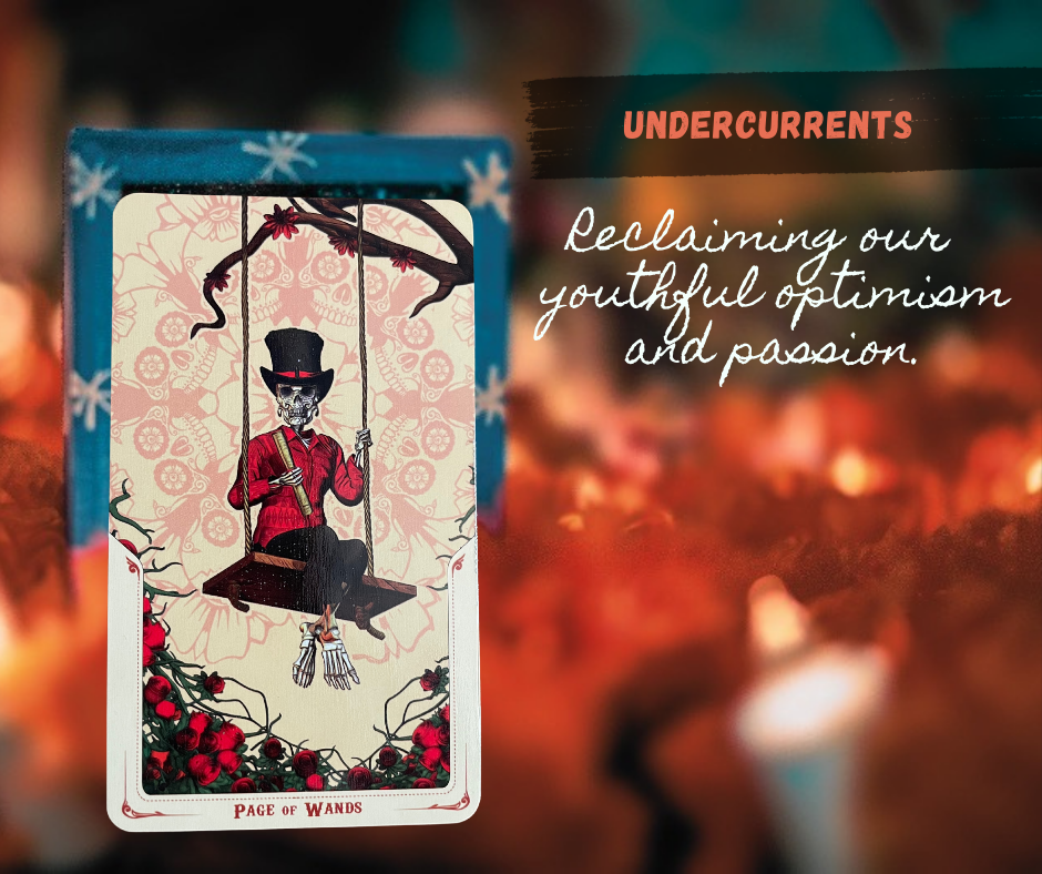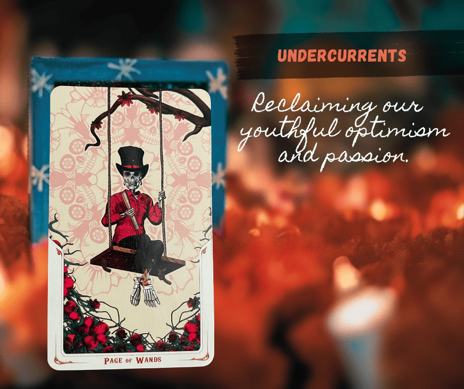 I’ve always had a love/hate relationship with the pages. They’ve been an uncomfortable mirror for my 18-year-old self – so full of life and ambition, undisturbed by the trauma memories, braver than anyone else I have ever known. Well, here she is again, Janet (you) in that idealistic 16-22-year-old self. The one blossoming with possibility and awakening, ready to make their mark on the world. This card shows up this week asking us to spend some time with that version of ourselves, to regain the optimism and “can-do” passion for following our dreams. Not with the shame or nostalgia of “what might have been”, but with the electric threads of spirit coursing through our lives. As we emerged from adolescence, what good qualities from that time still shine through? This is the heart of our courage and passion this week. It is time to recover our lost optimism.