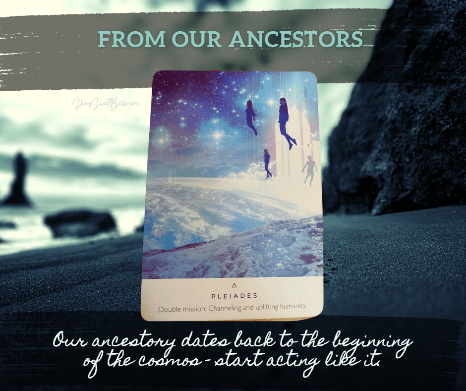 By pulling at one of the Starseed cards in this deck, our ancestors are pulling no punches in telling us that we are part of something bigger. All of us, every single one of us, comes from “star stuff” as Carl Sagan might say. We often forget that we are each brother and sister, crafted from the same cosmic chaos that formed our universe. None of us are better than or superior to anyone else, including those who believe they are Starseed beings who deliberately incarnated on Earth to help it. Our very physical existence on this planet is a miracle beyond measure and yet we continue to moan about our small jealousies over land, wealth, and status. When in fact, we could be elevating the whole of humanity. When we finally see each other worthy of that shared legacy of an ancient, cosmic connection, suddenly all our other cares melt away.