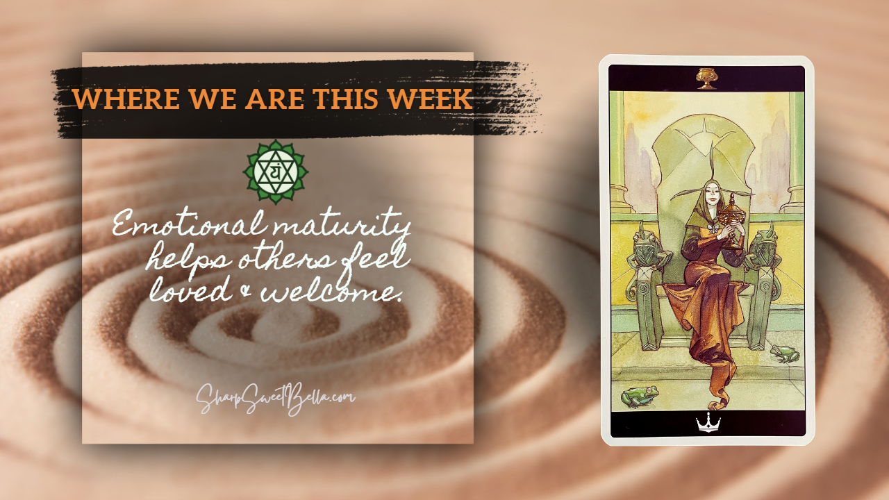 Last week we had the king of water (cups) in this same position. Reinforcing the new emotional maturity we have acquired over the past year, this week’s reading signals that it is time for us to open our hearts so others can be sheltered in the safety and security we have achieved. We are in a place of elevated clarity in 2023. We not only have achieved a new level of internal mastery but now we also are healed enough to offer that same safety and healing to others. Each of us has a distinct circle of influence where we could, today, be showing up with our arms open, willing and able to help others shoulder their pain and escape the intensity of the storms in their lives. It’s time to take care of our people.