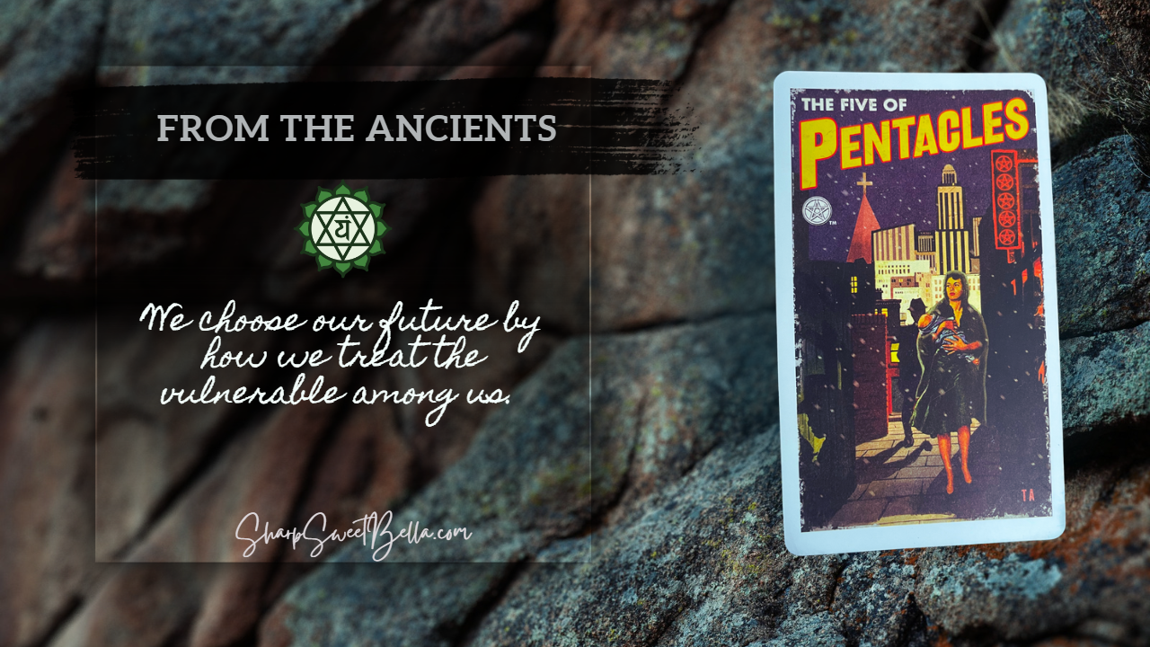 The Ancients have stayed consistent with the focus on the heart chakra. Here it is about unlocking our empathy for those who are more vulnerable than us. Sure, this card usually means we’re on the outside looking in, but here, it is a reflection of the lessons the generations before us have had to learn the hard way. The energy that we give or deny to those in need is the energy that will be given or denied to us when we are in need. All of us can relate to a time when we were in need. We all know what it feels like to have people turn their backs on us. All of us have faced rejection and hard times sometime in our lives unless we’ve been exceptionally lucky. I use the term “Radiant Resilience” to refer to the idea that vulnerability can be transformed into our highest strength. And how we treat those who are vulnerable is a choice for how we will be treated when it’s our turn. Use this lesson wisely so we don’t repeat the same structural patterns of the past.