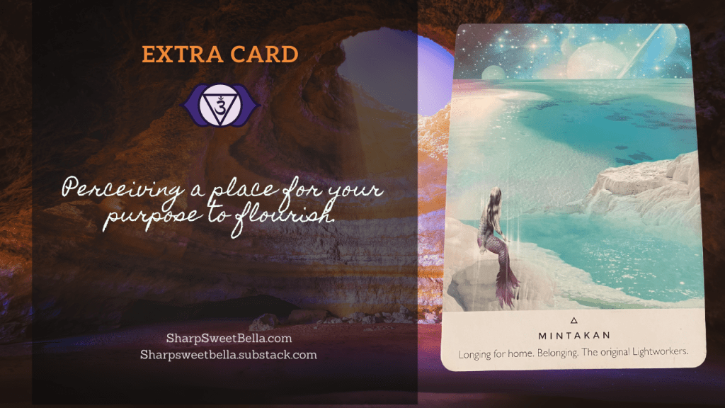 With all the talk about aliens this past week, I found it funny that a starseed card (Extra card) came up. The core concept is familiar to any geek: advanced beings from other planets are walking among us. Whether it’s for dominance or deliverance is a matter of perspective and imagination. We could easily list a dozen titles off the top of our heads (Secret Invasion, Star Trek: TNG, VOY, Picard, etc.) that entertain and intrigue us. As far-fetched as it might seem (or that we want it to be), we can’t deny that we’ve all considered this possibility at least once.