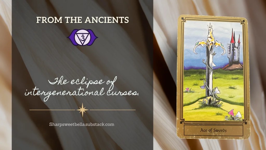 This full moon includes a lunar eclipse in Libra. For many that means a re-examination and transformation of relationships that do and don’t serve us. But one of the biggest that I don’t want us to lose sight of is the relationship with our elders, ancestors, and ascended ancients who came before us. This card serves as a challenge, much like the “Sword in the Stone” of Arthurian legend: we have been destined for this moment since our birth. Are we willing to step up and lead? Will we finally shed the skin of our old self to embark on this miraculous, yet treacherous journey of curing our intergenerational curses, recovering the treasures of those who came before us who couldn’t go further because of the world, society, and time they were born in? Are we brave enough to take up this sword?
