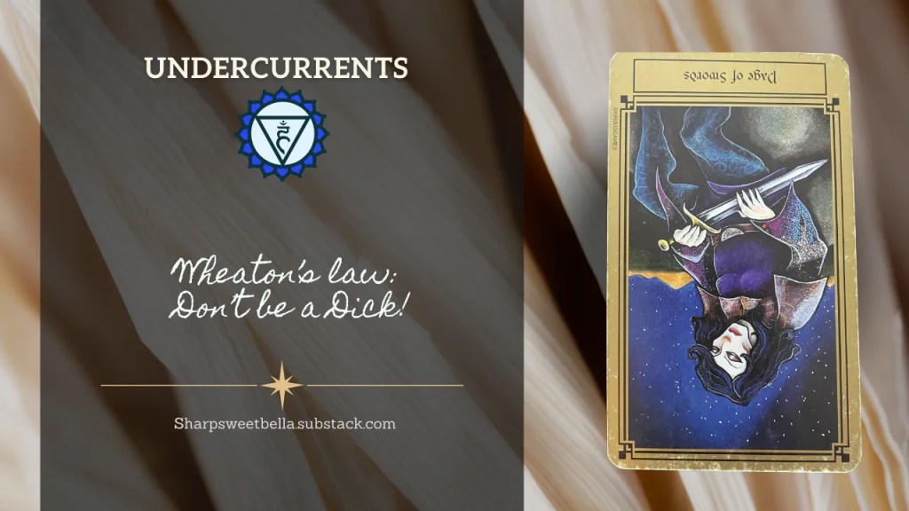 The trolls are out in force, trying to thwart anyone who is just trying to put good into the world. I’m not exaggerating – among my circle of influence, there has been a noticeable uptick of deliberately divisive commentary being left on otherwise benign posts. Do NOT give in to the bait…and don’t start shit this week. It’s going to feel difficult to remain calm, but keep Wil Wheaton’s law front & center: Just don’t be a dick (and don’t give in to those who violate that law). You may have to be merciless in enforcing this for yourself, but it is necessary if you’re going to get the growth you need.