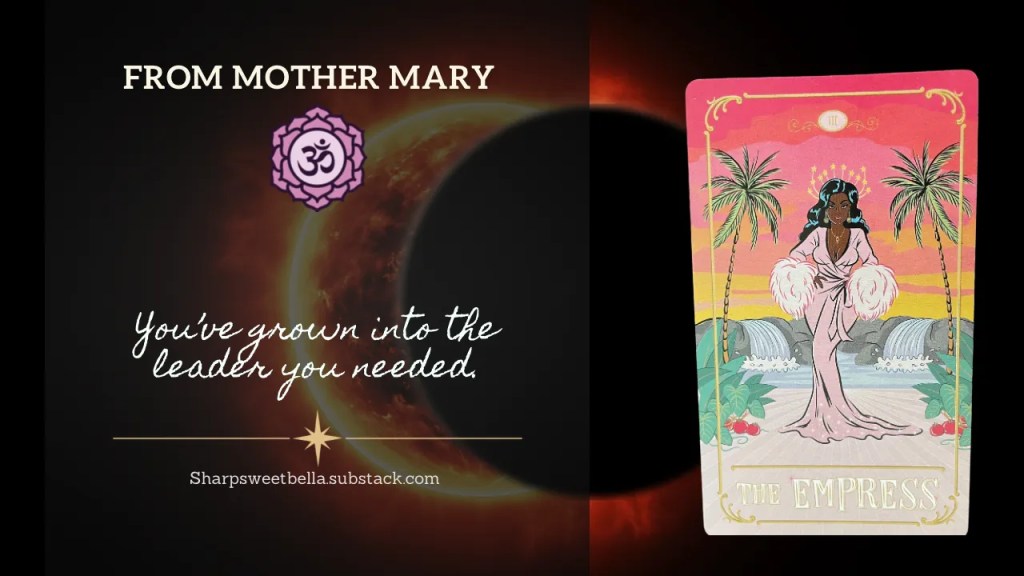 When Mother Mary brings up the Empress it is a sign to both you and me that it is time to step into your righteously compassionate, heart-centered leadership selves. This is always who the Empress is for me, who Mary has been for me – soft power. The kind that works through the undercurrent, shifting the mood, feeding the soul, urging it toward justice and connection. Embody this energy to transform the gifts we received from our ancestors into the healing empathy the world needs for the future.