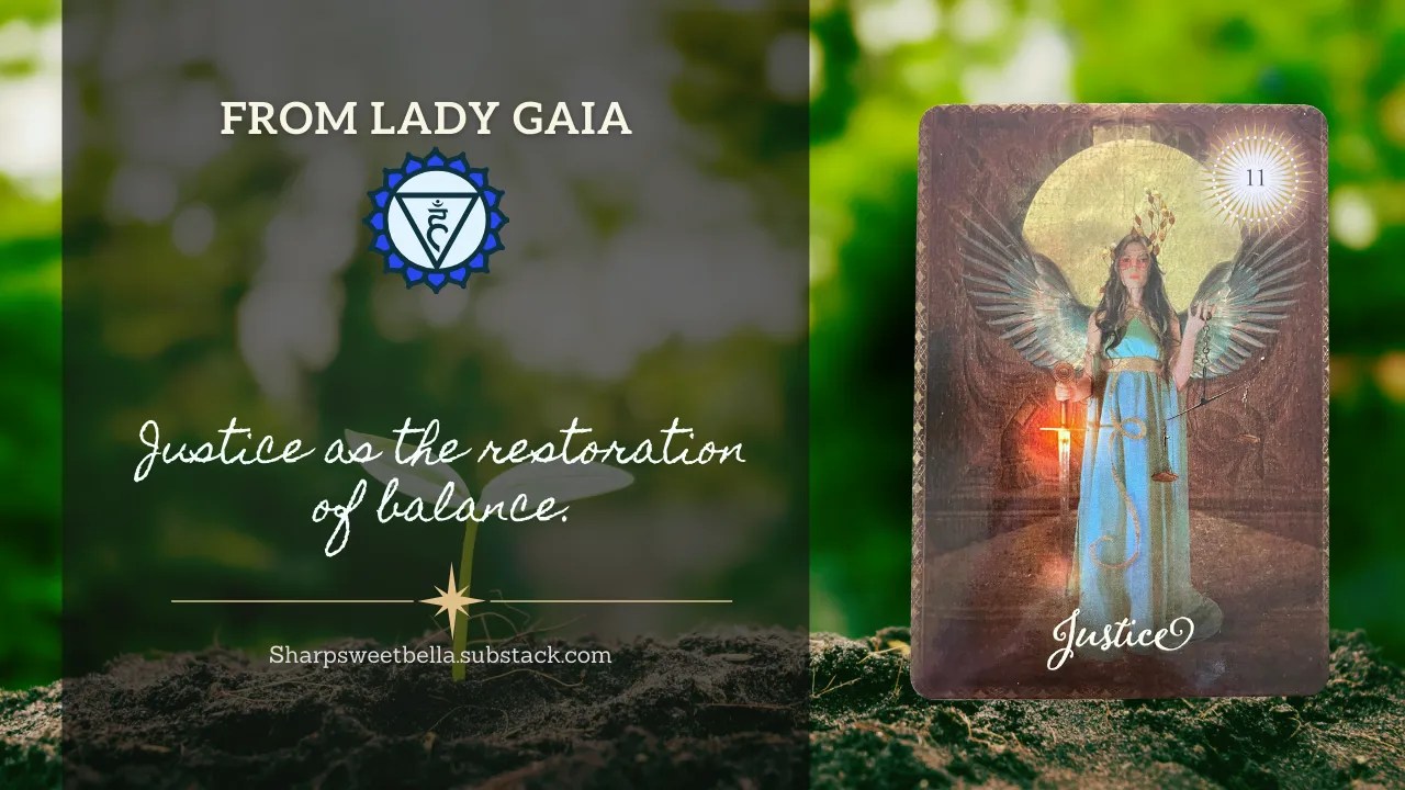 Ever notice how thin the line is between self-defense and punishment? A crisp edge between a deterrent and coercive control. This week’s advice tells us to examine the real-world applications of how you view justice. In particular, I urge you to pay attention to abolitionist voices that offer ideals that embody the restoration of the community. Gently push back against assumptions about criminality, war, and punishment – truly know where you stand and why. (check last week’s reading which also featured the Justice card).