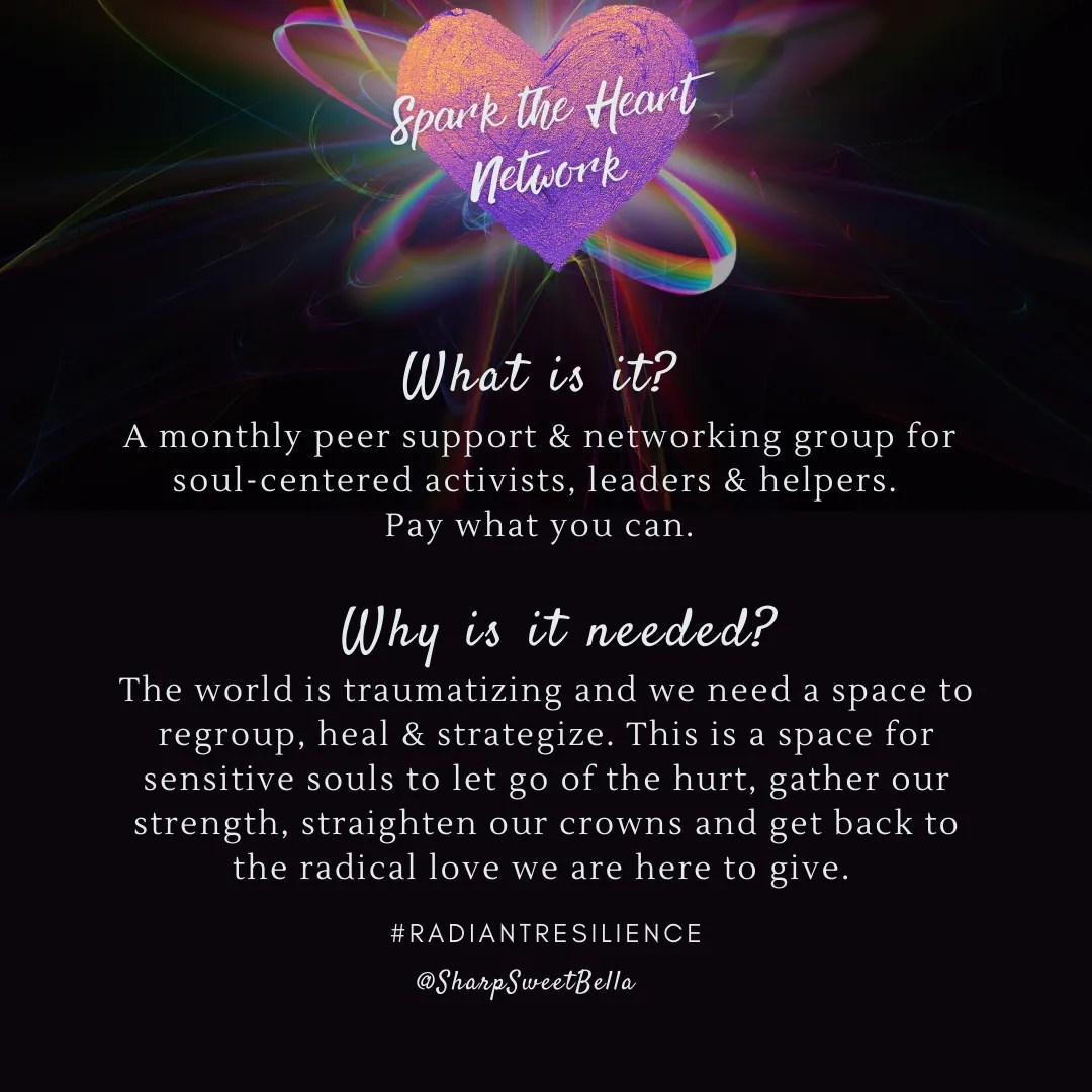 If this advice is helpful for you, sign up for my next Spark the Heart Network meeting happening on July 23rd at 5:30 pm (Mtn). Bring your questions and we’ll source the answers together. Think of this as a staffing for the open-hearted helpers and soul-driven leaders to support each other. Donation-only.