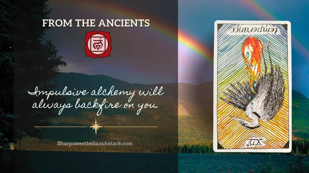 Do not rush in unprepared – the ancients are begging us, as loudly as possible to not rush into anything without taking adequate time to prepare. This includes things like calming our nervous systems so we don’t make impulsive trauma choices, making a conscious strategy instead of simply winging it and in general exercising more patience and deliberation than we have perhaps practiced before. This era of humanity will not be built by snappy clapbacks and withering threats but by decisively informed action and judicious moderation of our worst tendencies.