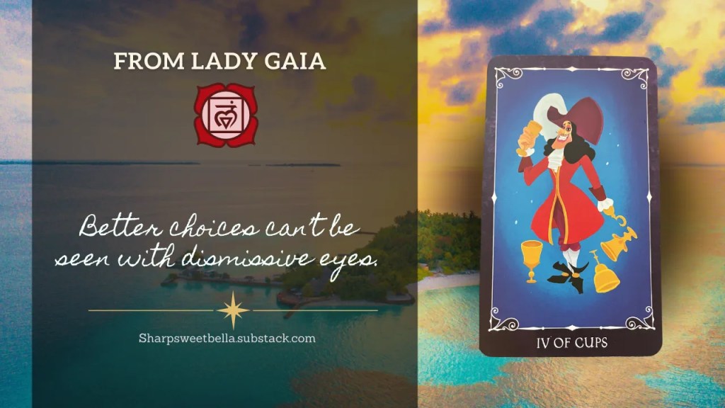 In the human services work I did, it was common to hear, “They should have made better choices.” Hmm…okay, but what if they made the best choices available to them at the time? What if there were larger barriers to better choices? Mother Earth, the natural guardian of our material world reminds us that not everyone has access to the same choices as another, nor does everyone have the same priorities that we do. Likewise, especially for those of us who are used to a lack of resources, and limited choices in how we can respond to things – we might miss seeing the far-off possibilities on the horizon out of our dismay at all the discontent that life has offered so far. Keep your eyes open for the glittering opportunity that is trying to catch your eye.