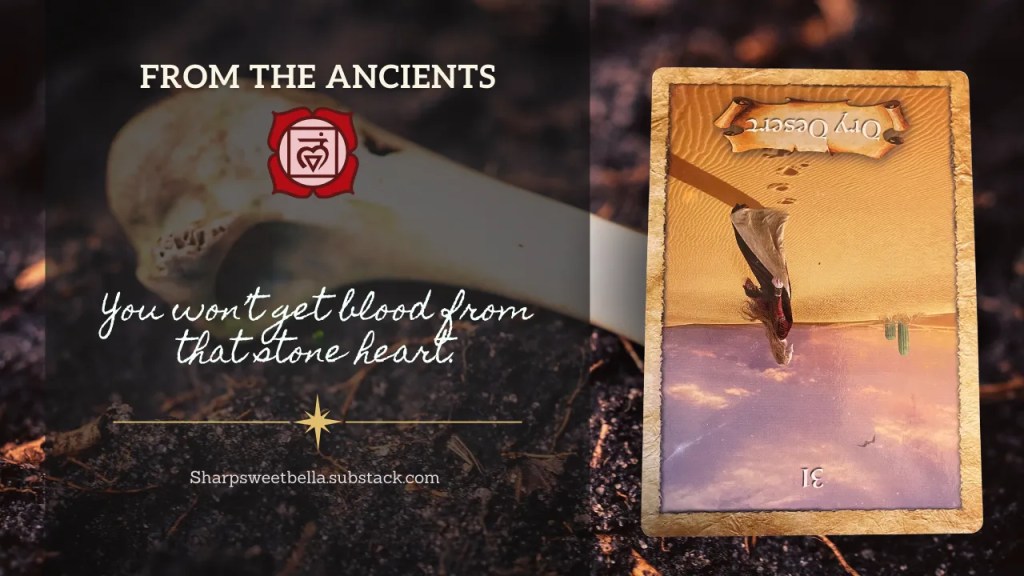 Just going to be blunt here – we have gained all that we can from the inquiry with our ancestors. They are waiting for us to integrate our learning, to call back our power, and to move forward in the ways that they couldn’t. But also…one very particular message came through that one family member, that one judgmental family member who has shut themselves off from any healing attempts – it’s time to move on. You can’t get an apology from them the way they are right now, nor will they have the kind of insight you’ve found. Where you see possibility, they only see a desert of emptiness. This is not your fault, but also not your responsibility. Send them your blessing and move on.