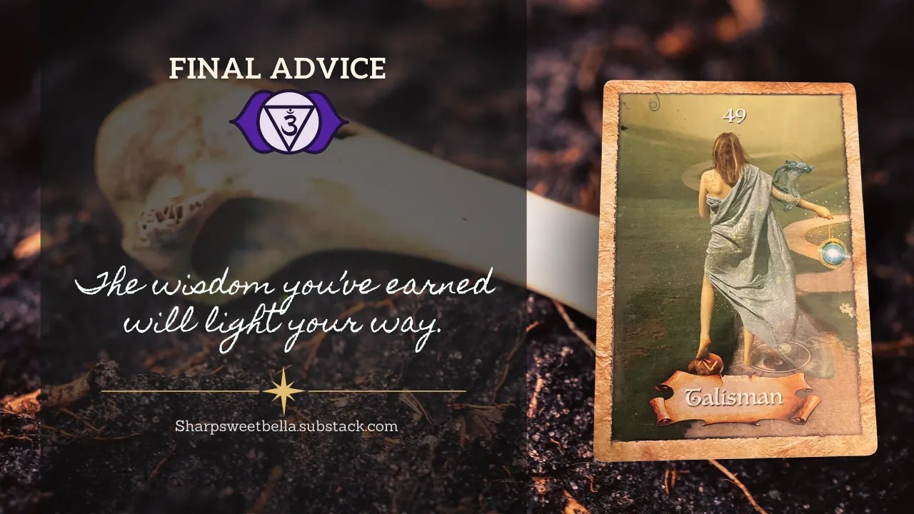 This is one of my favorite cards on this deck. It represents the manifestation of all our wisdom, carried like a protective talisman, a powerful lantern to light our way forward. We don’t need to revisit these lessons, just crystalize them into something that symbolizes what we’ve gained. For me, it’s the rosary that I use when I start the Messages of Divine Love, a rainbow-beaded symbol of how I’ve integrated my Catholic, Latina background with my Rose Queen, Queer Geek Empress presence of today. Find or create a physical representation of these lessons you’ve found through your intuitive inquiry. Let it be a reminder of how far you’ve come and what goals you have on your horizon now. You are a new person who has earned this wisdom in the most authentic way possible: lived experience.
