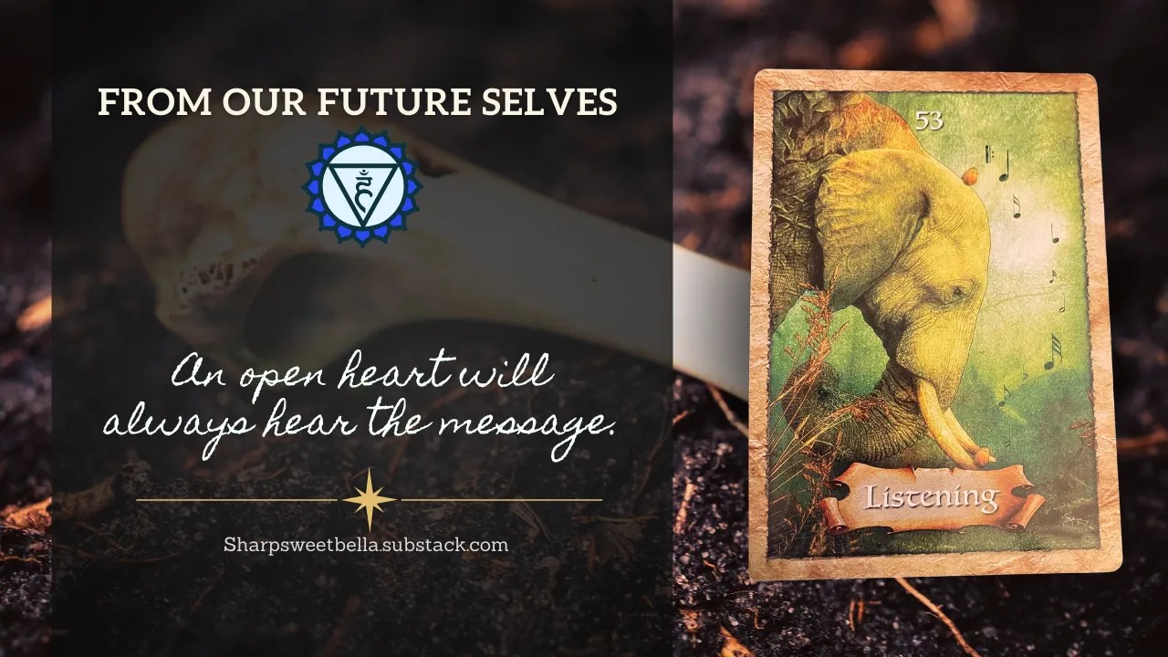 As much as I am known for how much I talk, it is in the silence of the heart that I can truly hear the truth. One of my favorite mentors, Tomas Cody, used to say “Much can be communicated in silence.” For it is in the silence of meditation, the silence of a starry night, and the absence of distracting noise that we can finally hear the messages of divine love. This card offers a two-fold hope. First, if we stay true to ourselves and listen to the universe with an open heart all of our questions will be answered, prayers heard. The second is that if we have faith, the people who most need to hear our messages will have the openness of heart needed to find us. This is my prayer for me, you, and us together: An open heart will always hear the message.