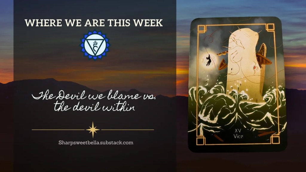 This week, we need to discern between the devil we’re always tempted to blame and the one that keeps trying to make itself known from within. The spiral of trouble is a hint at where that culpability needs to land. It doesn’t mean we have to victim-blame ourselves for the problems that have befallen us, but we need to recognize the ways we tell the story of our demise only prolong the impact of that pain. We become then, a pawn of our own narrative, a victim of a story told on repeat, punishing us for whatever fault we were given to bear. We are not responsible for what happened to us, but we are responsible for continuing to escape facing it head-on so it doesn’t continue to control us from behind.