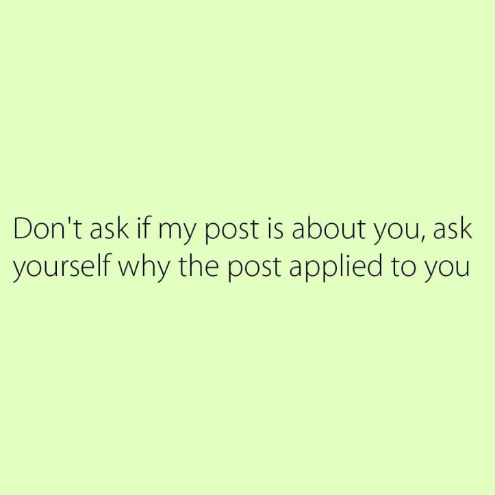 And if you’re self-centered enough to think this is about you, then maybe you should consider why it applied to you. There is nothing wrong with taking a page out of my book and looking in the mirror to see if you’re wearing something that resembles what I’ve written. These things can be corrected…or can just be unfriended without drama & tears.